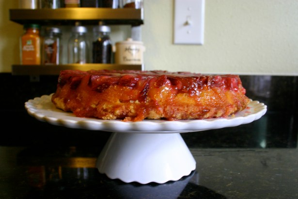 The original recipe is from Martha Stewart, but I felt like there were a couple crucial steps left out of the written directions. Hopefully my additions help! Also, a quick note. I understand that some upside-down cakes can be made in a spring form pan. Unfortunately, a lot of liquid is released from the rhubarb when it is cooked, which may leak through the spring form and start a small fire in your oven. I may or may not know this from personal experience…