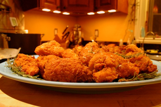 • I am totally with you on the chicken fingers approach–that would really cut down on frying time! Next time I’ll also use extra lemon like you recommended. You must really like it spicy if you double the spices! I love cayenne and even my mouth was burning a little just with the normal level of spices. 🙂 I am glad to hear I was not the only one who was totally exhausted after making this. It was undoubtedly worth it, but man I needed a serious nap after all that.