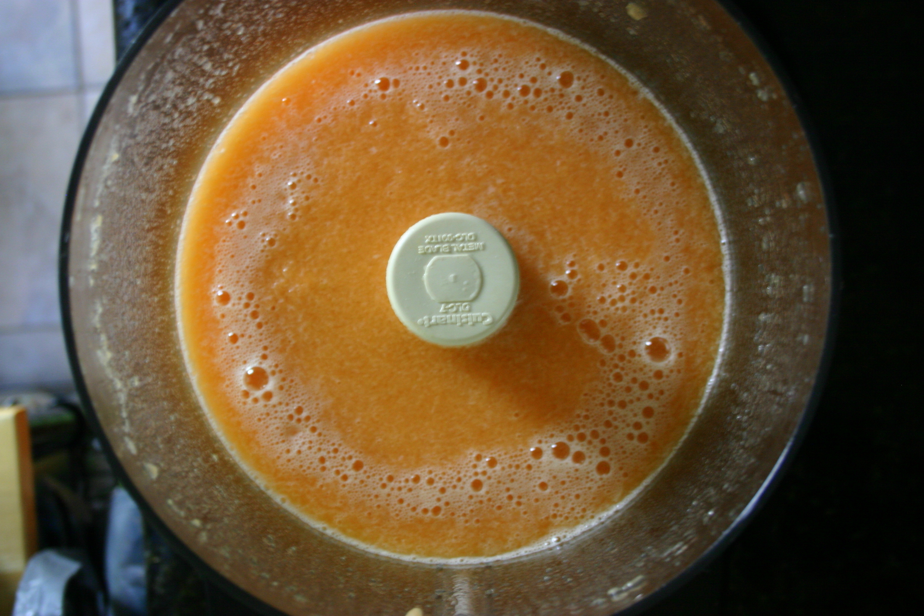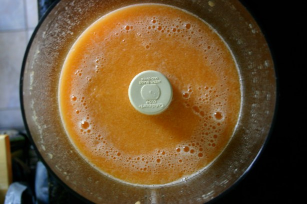 Using a blender or a food processor, blend until nice and smooth. Although, I am definitely not opposed to an occasional small chunk of cantaloupe in my popsicle!